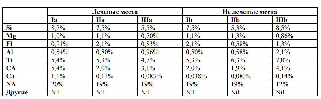 Анализ следов металлов в образцах тканей леченых и не леченых областей